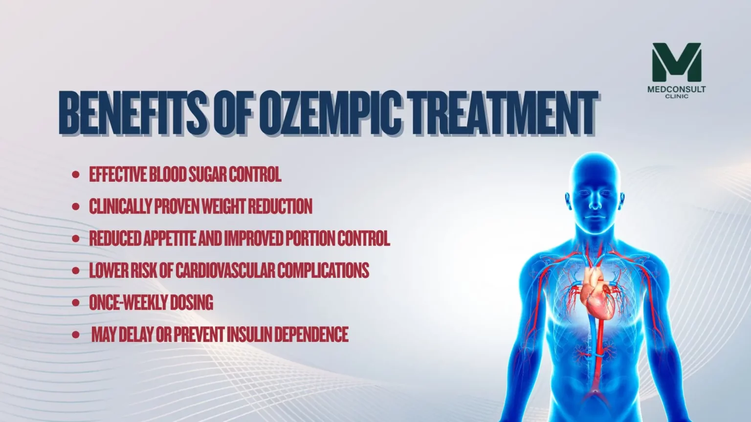 - Licensed access and medical supervision – Ozempic® is a prescription medication, and at MedConsult, you receive your treatment under the guidance of licensed doctors who specialize in metabolic and weight-related health. Our approach prioritizes safety, proper dosage adjustments, and long-term care.